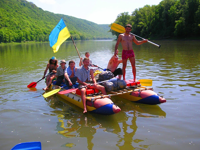 I cały dzień,spływ katamaranami w spokojnej wodzie (rzeka Dniestr).