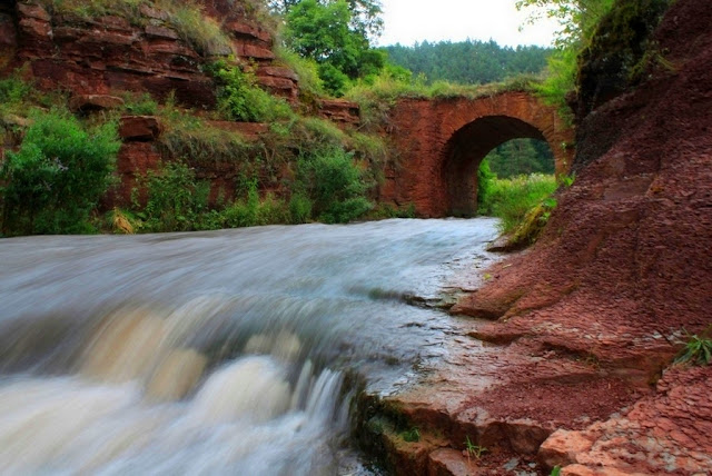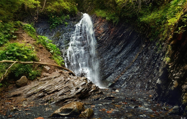 Głęboki na 150 m kanion z pięknym16. metrowym wodospadem na rzece Dżuryn.