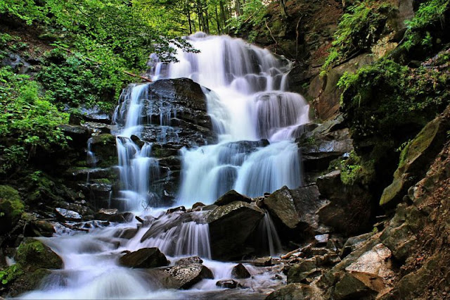 Wyjazd z przełęczy w kierunku miejscowości Pylepec. Zakarpacie. Zwiedzanie wodospadu, miasta, rynku oraz zakup pamiątek na rynku huculskim. Zakupy, tankowanie.
